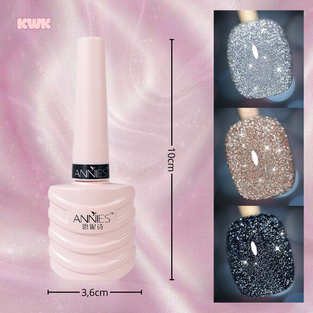 ANNIES FLASH Nail Polish adalah kutek dengan efek kilau flash yang intens dan glamor. Menghasilkan pantulan cahaya yang memukau saat terkena lampu atau kamera, membuat kuku tampak berkilau maksimal dalam sekali pulas. Teksturnya halus, cepat kering, dan mudah diaplikasikan tanpa menggumpal.