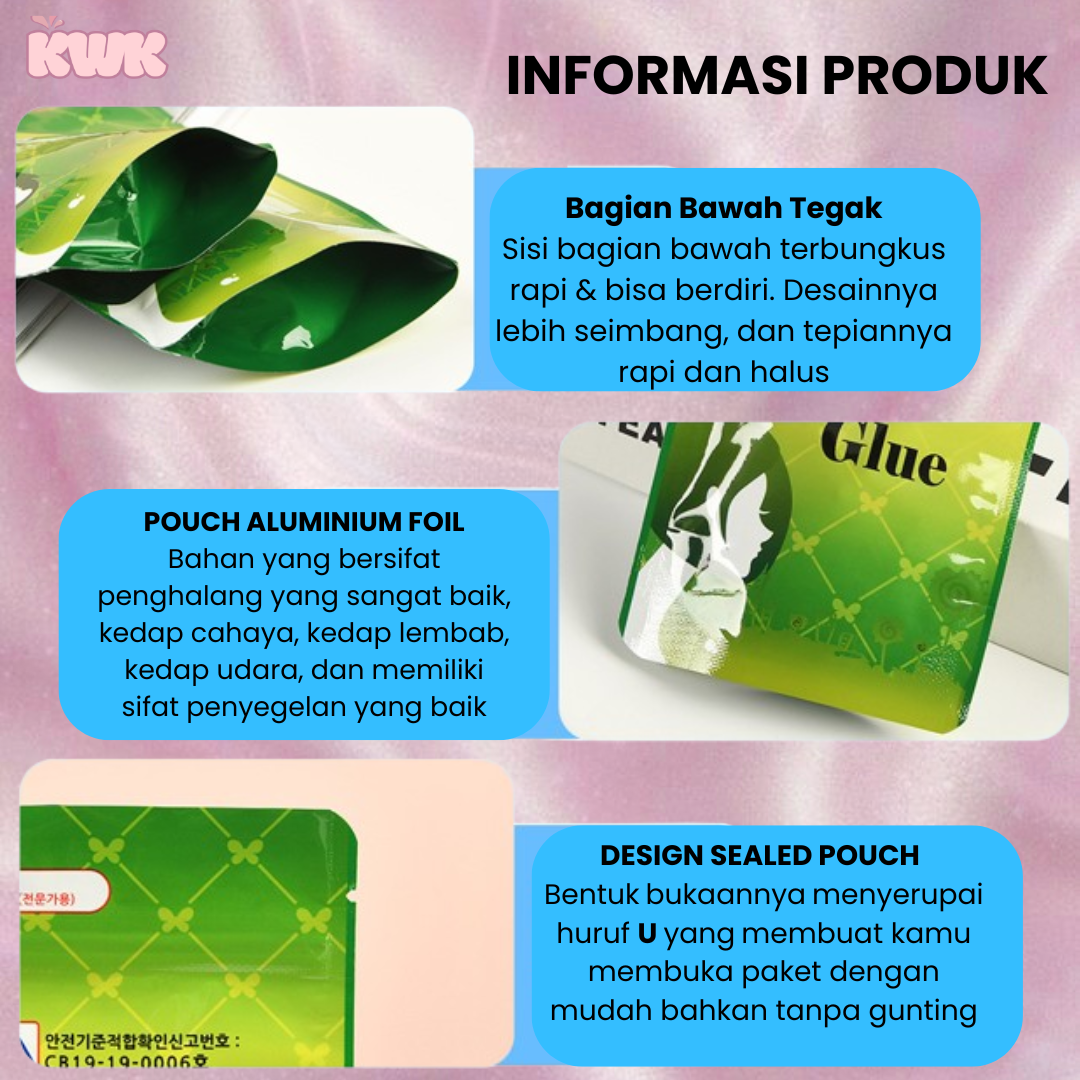 – Packaging : Sealed Pouch – Kualitas lem lebih terjaga