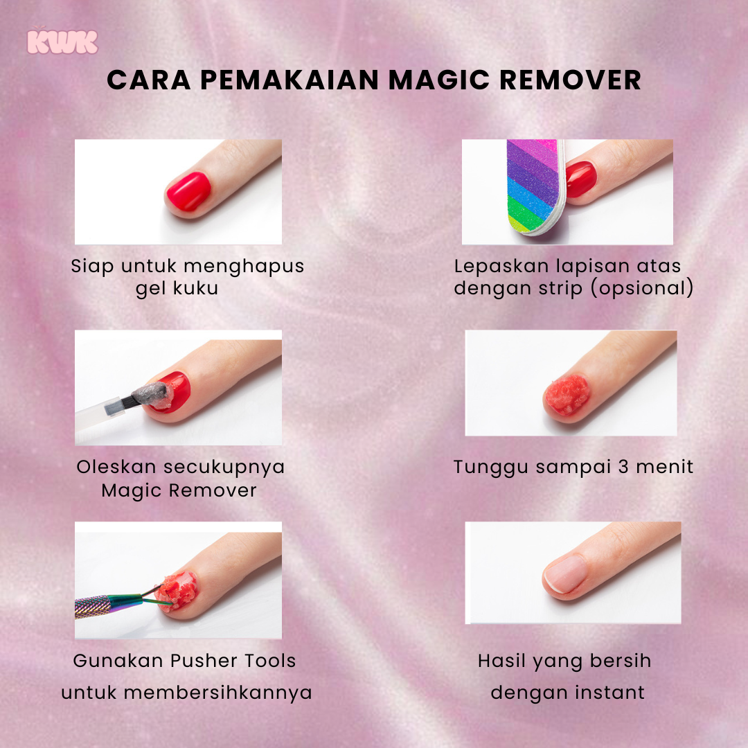1. Gunakan secukupnya magic remover yang akan digunakan untuk membersihkan kuku, (JANGAN DIAPLIKASIKAN KE KULIT!!!)