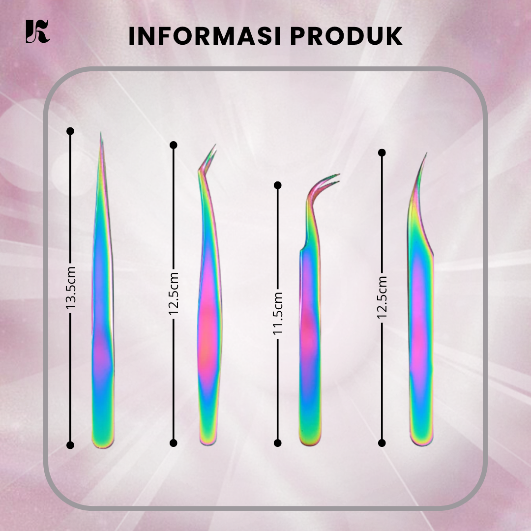 Pinset bulu mata palsu stainless steel eyelash tersedia warna hologram dengan kualitas super premium,  anti kusam, super keras dan tidak memudar, ujung forsepnya dapat ditutup 100%. Model dan bentuk tergantung kegunaan nyaman yang di paai masing-masing.