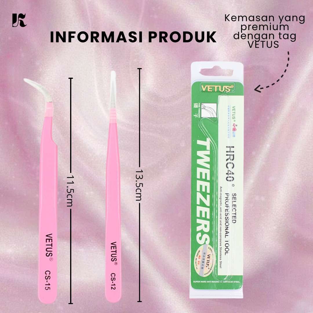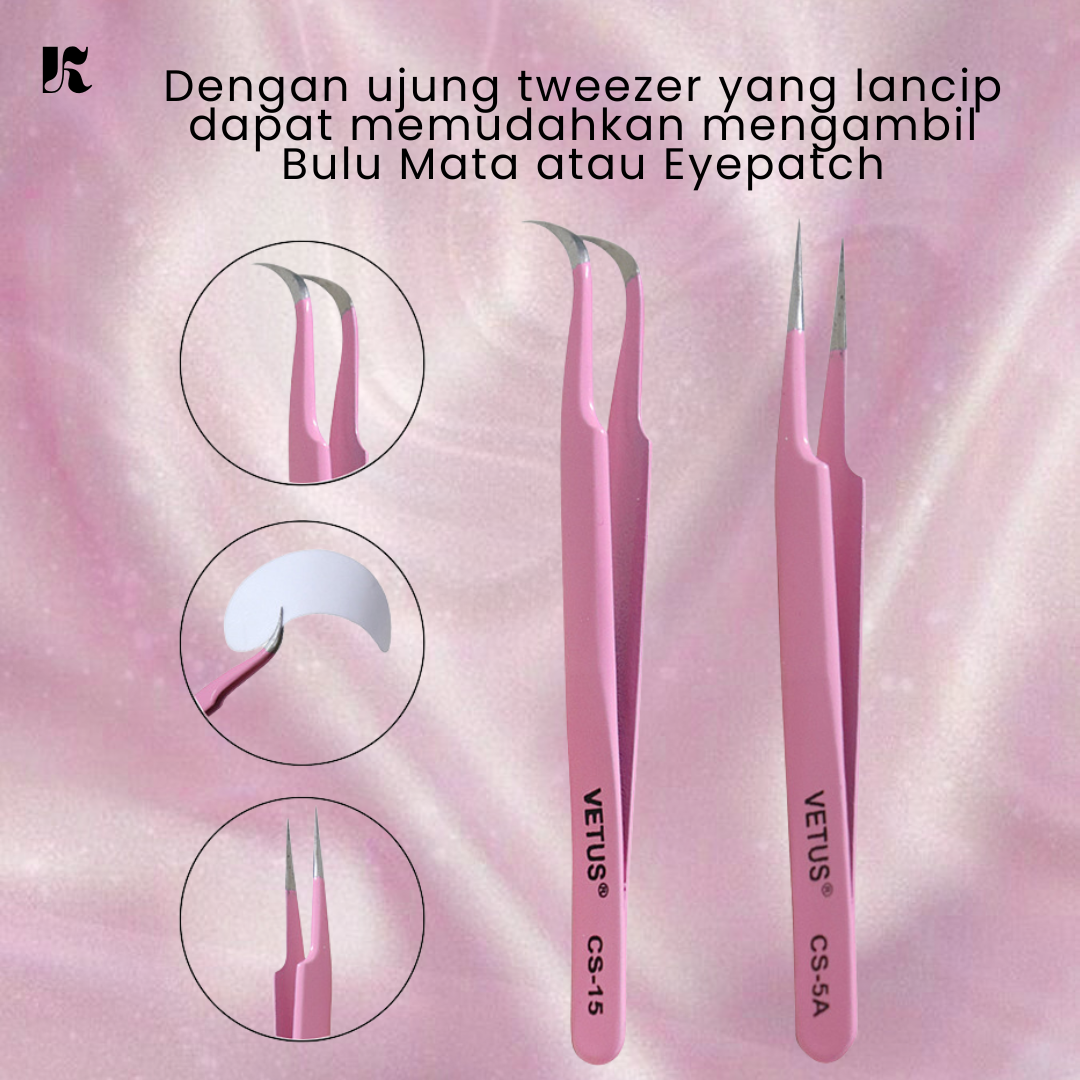 Tweezer / Pinset Vetus Bengkok Pink For Eyelash Extension Original Vetus