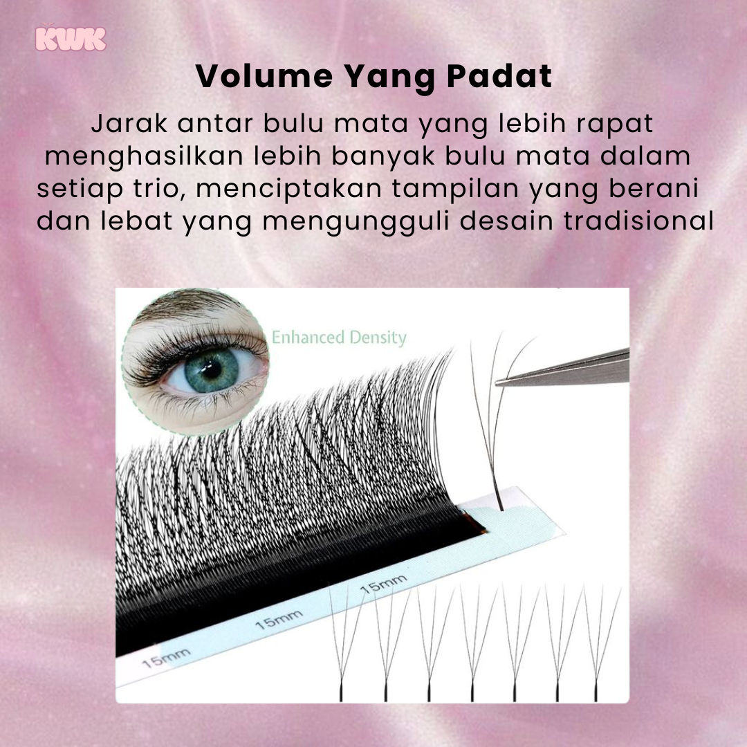 Eyelash Russian Volume 3D adalah jenis ekstensi bulu mata volume yang memberikan tampilan lebih tebal, penuh, dan dramatis dibanding bulu mata palsu klasik. “3D” artinya tiap fan (kipas) terdiri dari 3 helai bulu mata tipis yang ditempelkan bersama ke satu bulu mata alami, sehingga menciptakan efek volum yang lebih terlihat.
